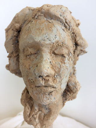 Beelden en ruimtelijke keramische portretten van mensen,